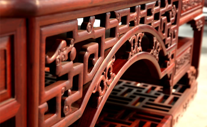 流程三雕刻工序 為了讓紅木家具看上去更美觀(guān),在木工工序完成之后一般都會(huì )用一些或簡(jiǎn)單或復雜的雕花來(lái)進(jìn)行裝飾,也就是行業(yè)中所說(shuō)的雕刻紋飾。雕刻紋飾必須在“認榫”完成后進(jìn)行,因為“認榫”時(shí)需要修整,如果先做好雕花再開(kāi)榫,紋理很難保證雕花部件都在同一平面上,而此時(shí)為了保證雕花...